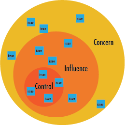 The second circle, “influence,” is a container for all the underlying issues you can’t solve right away, but you might have the ability to influence indirectly with some degree of confidence that your efforts will pay off.